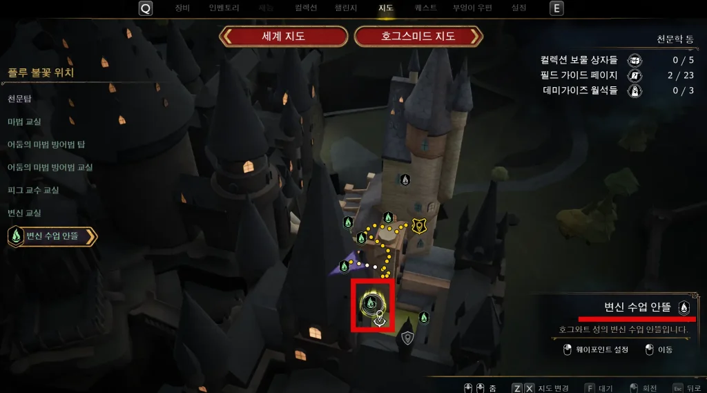 그 다음에는 귀찮게 걸어가지 말고 지도를 열어서 변십 수업 안뜰로 순간이동해준다.