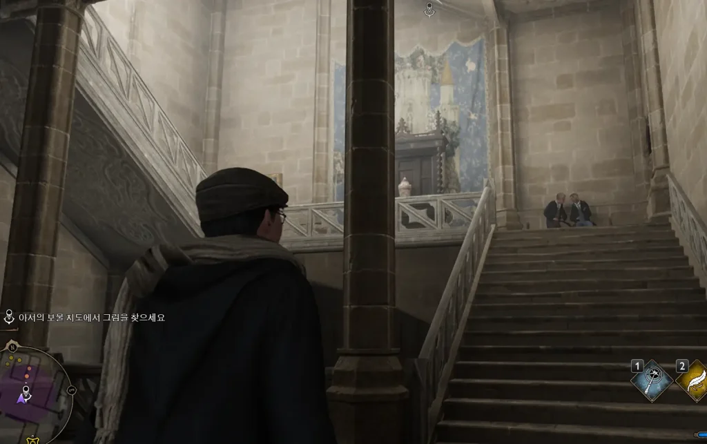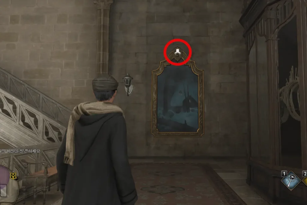 보물지도에서 볼 수 있었던 액자를 발견할 수 있는데 위쪽 부분을 타겟으로 하고 아씨오 마법을 써주자.