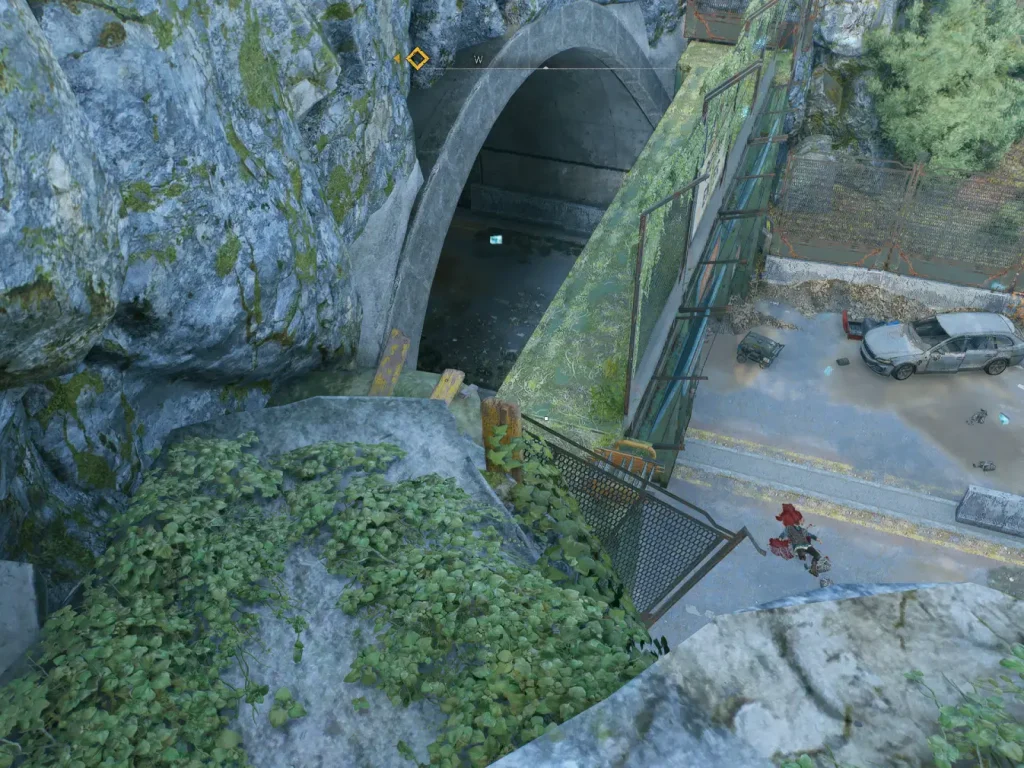 터널에 들어가려고 이곳 저곳 헤멜 수 있는데 여기서 화면을 왼쪽으로 돌려보자.