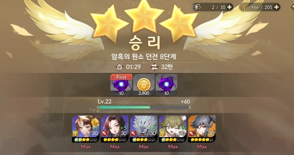 그러면 이렇게 낮은 스택으로도 암흑의 원소 8단계를 클리어 할 수 있다.