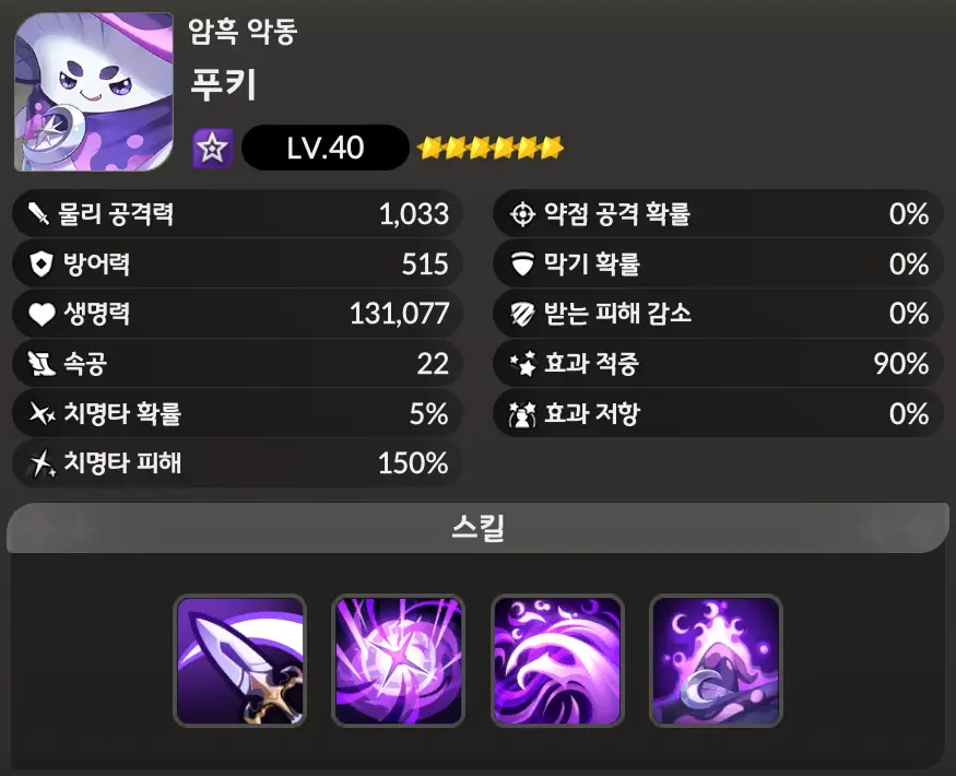 암흑의원소 몬스터 푸키 공략법