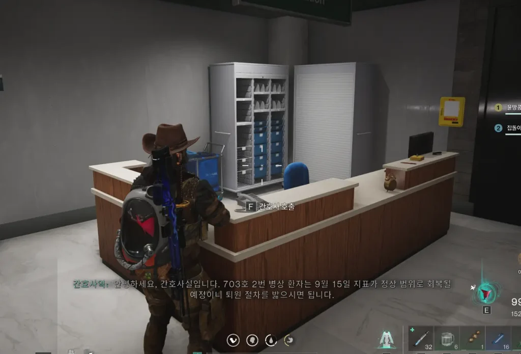 데이턴 병원 떠나기를 퀘스트를 하다보면 병원 안에서 나가는 길을 찾아서 폴에게 가져다주라는 내용이 있다.