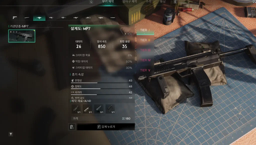 아마 처음에 시작하면 초급 장비 제작대에서 임의의 총기를 제작하라고 나와 있을거다. 아무 총이나 제작하면 되는데 문제는 재료가 없다.