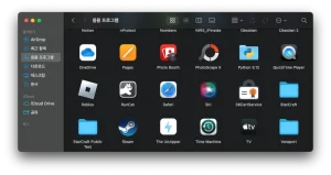 Dock바 안에 있는 런치패드 아이콘을 누르거나 트랙패드를 조작해서 실행할 수 있는 화면인데 쉽게 생각해서 아이패드나 아이폰의 화면이라고 생각하면 된다.